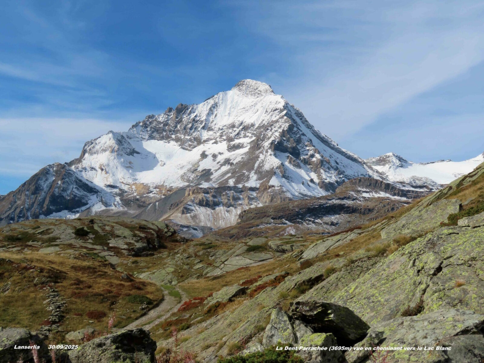 Photo ci-dessous : La Dent Parrachée vue depuis le Col de Lanserlia