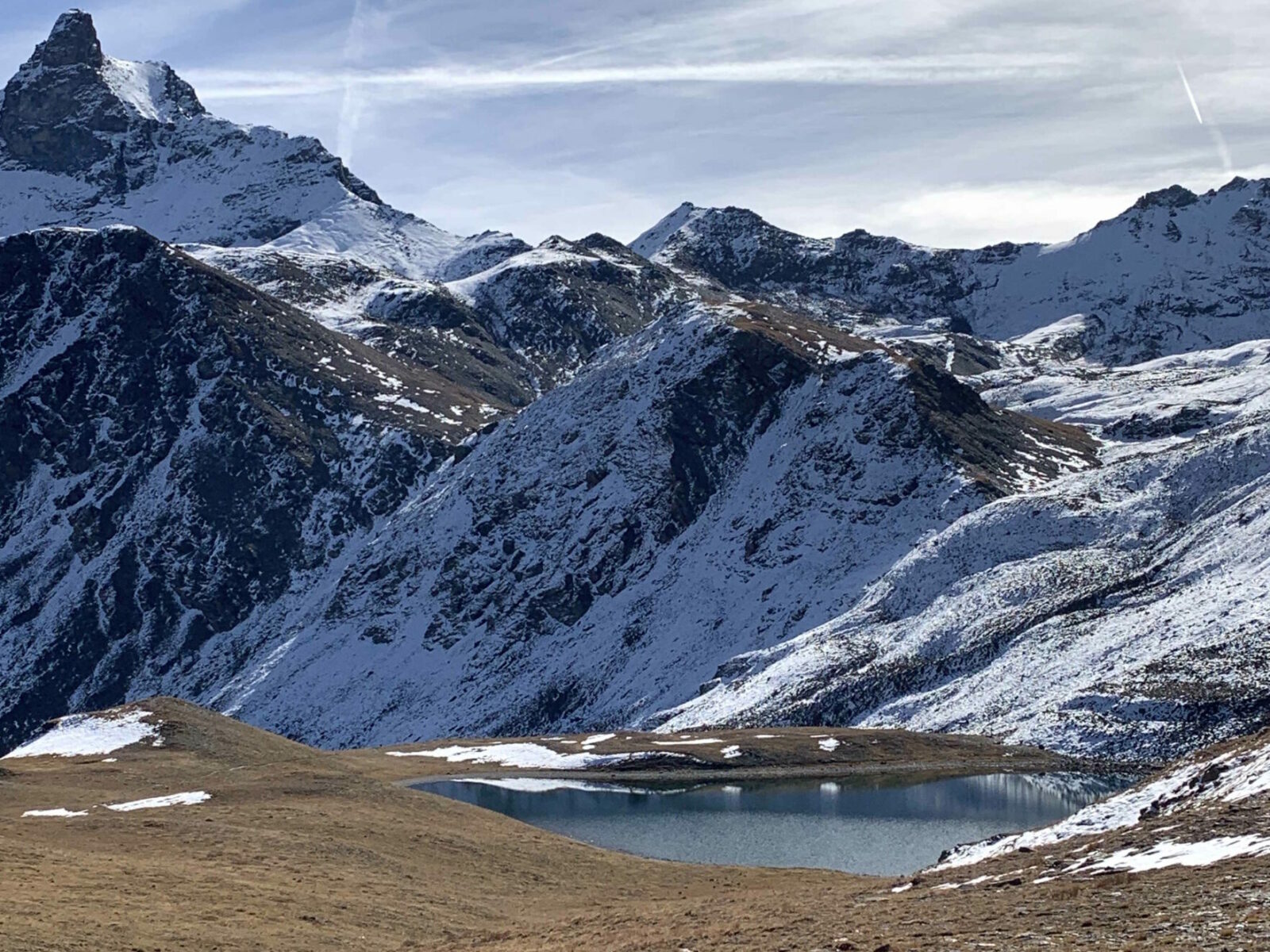Image ci-dessous : Le Lac de Lanserlia et à droite la Pointe de Lanserlia (2909m)
